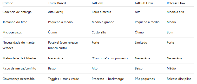 Se seu time depende de branches longas para “se sentir seguro” → o problema provavelmente é automação/qualidade, não o modelo.