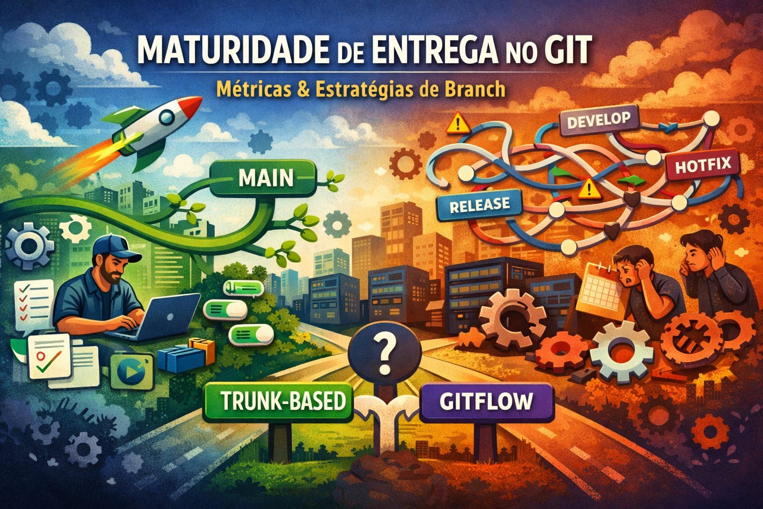 Tem um tipo de “maturidade” que aparece rapidinho quando você olha as métricas do time: lead time alto, deploy raro, PR gigante, merge doloroso, hotfix na sexta-feira, e um cemitério de branches que ninguém sabe se ainda vive.